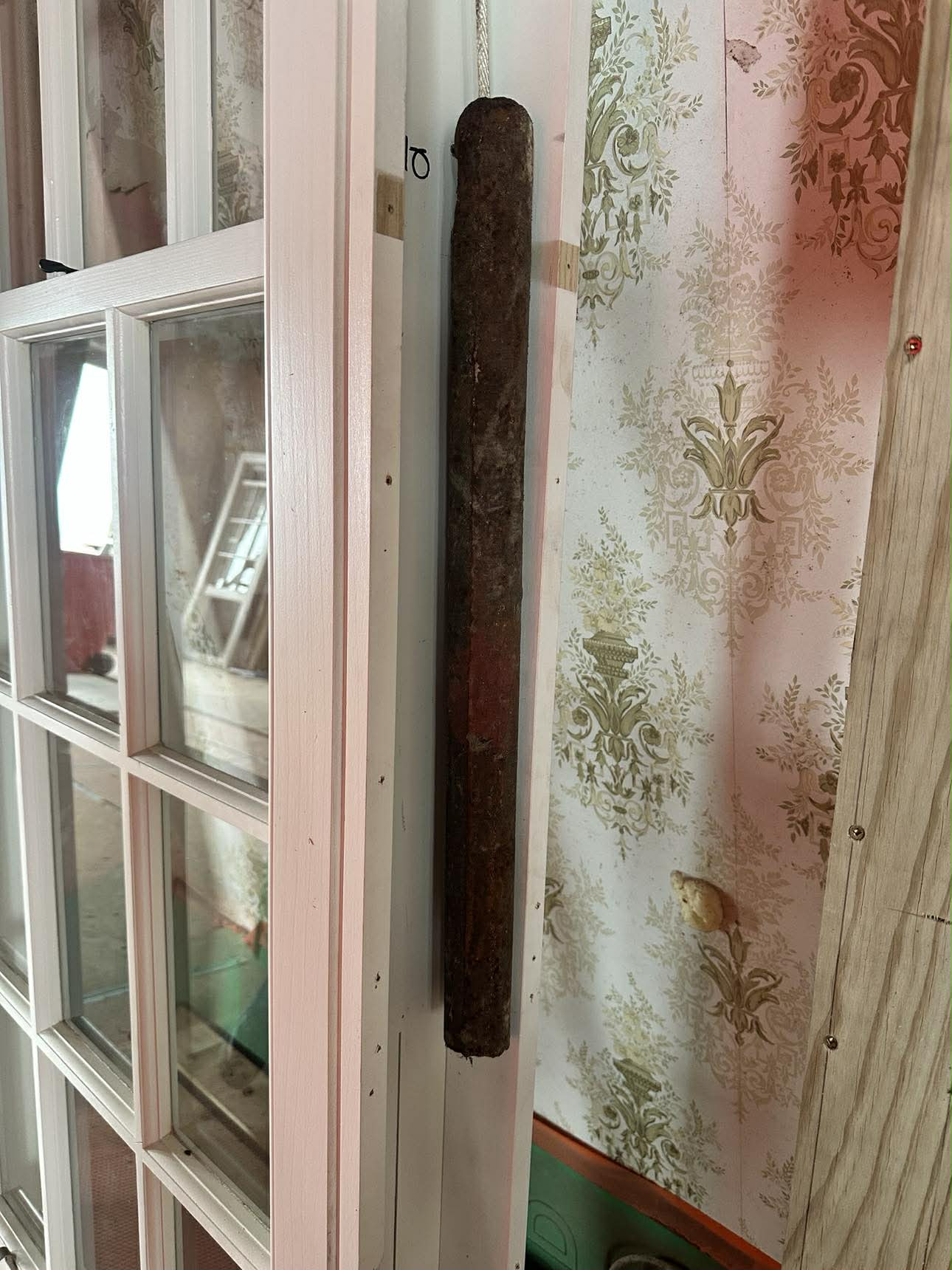 The replacement sash windows are not entirely new. Hidden within the frames of each window are two of the original weights, that help the sash windows glide into place. These weights are heavy – almost 10kg each. “There’s heritage value in reusing them, and they would be expensive to replace,” says Sam.