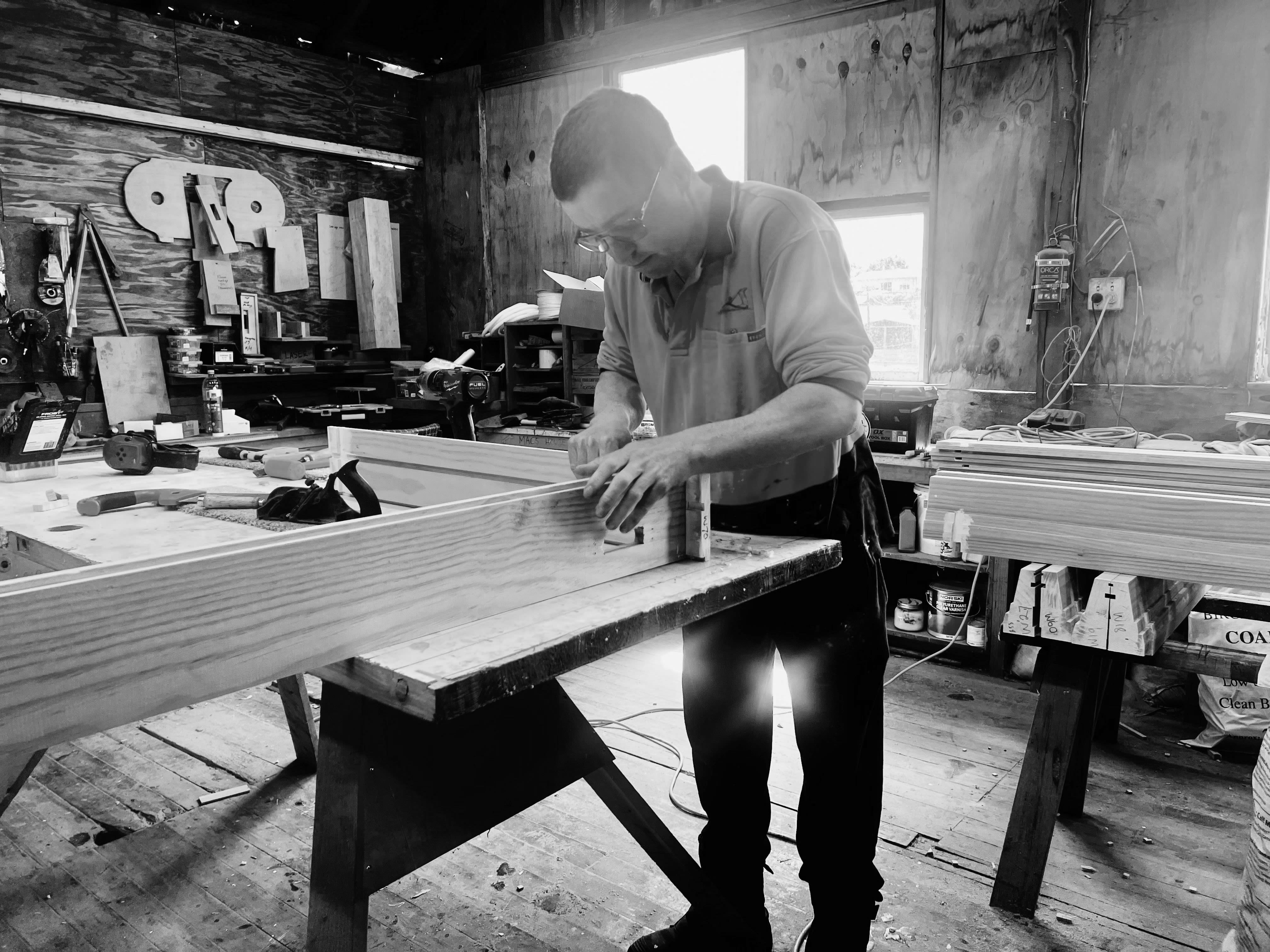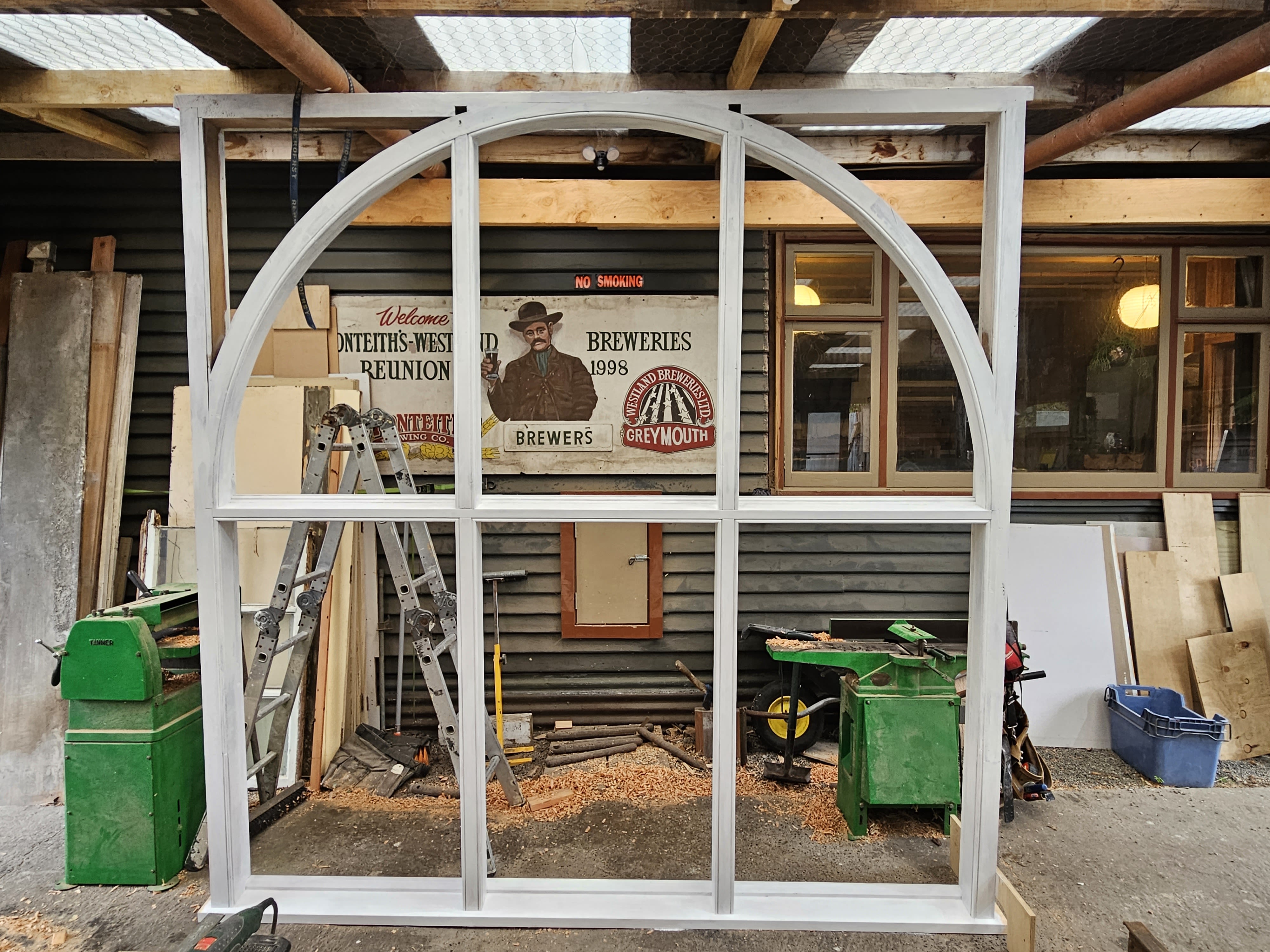 Courtroom window in Paparoa Timberworks workshop | Sam Weston