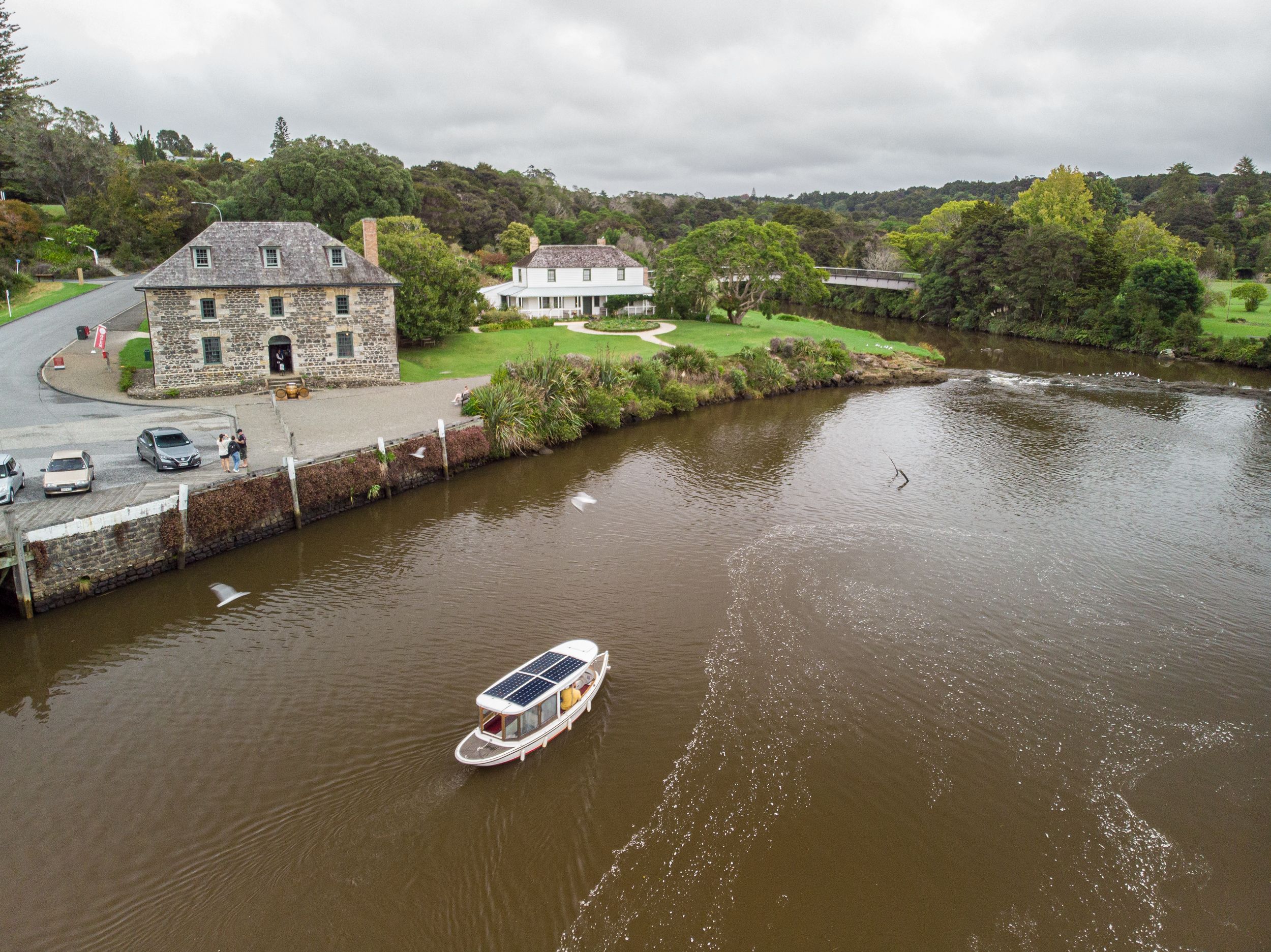 Electric Boat on the Kerikeri Basin Historic Area. Kerikeri Mission Station by Mark Russell